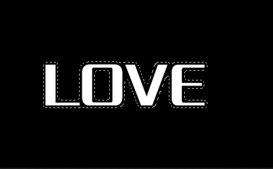 2.在工具箱里使用文字工具在画布上输入“LOVE”,字形、字号自定,颜色设为白色。
